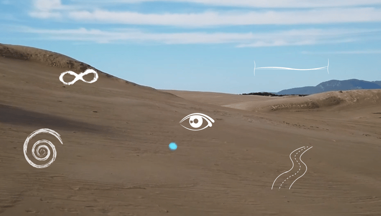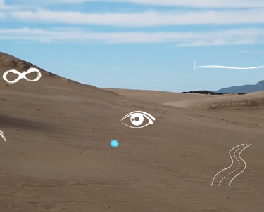 Users embark on a solitary walk through an endless digital desert. As the journey unfolds, visual symbols—representing thoughts, emotions, and inner impressions—emerge along the path. Users can choose to interact with these floating images or let them pass by, reflecting the personal decision to engage with or release one's thoughts.